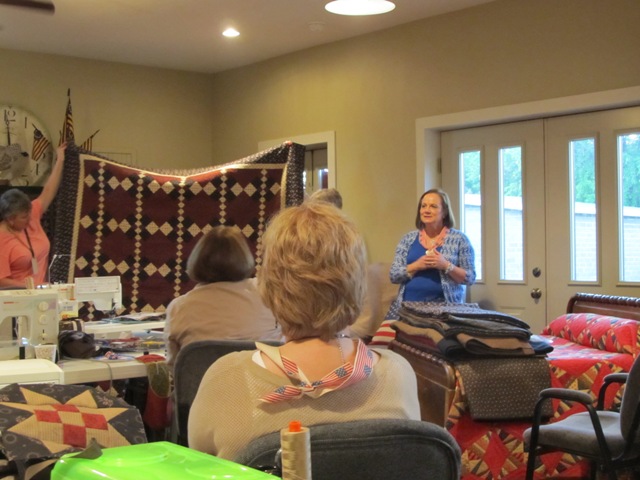 After a full day of sewing on day 1, Paula treated us to a trunk show of her quilts. I love hearing the stories behind the designs.