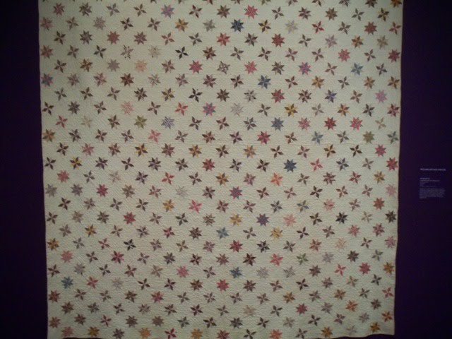 Thanks to Kathie and Victoria, I found out about the quilt exhibit at the American Folk Art Museum when I was in New York city earlier this week. Luckily, I had a break between my scheduled events and was able to squeeze in a quick visit to the AFAM. The “Year of the Quilt” is an exhibit being done in two parts. So, if you are able to get to NY, you can catch part 1 until mid-April and part 2 opens in early May. There are supplemental exhibits at AFAM branch locations. “Super Stars” opens in November 2010 and there is an exhibit of red and white quilts scheduled for one short week in March 2011.